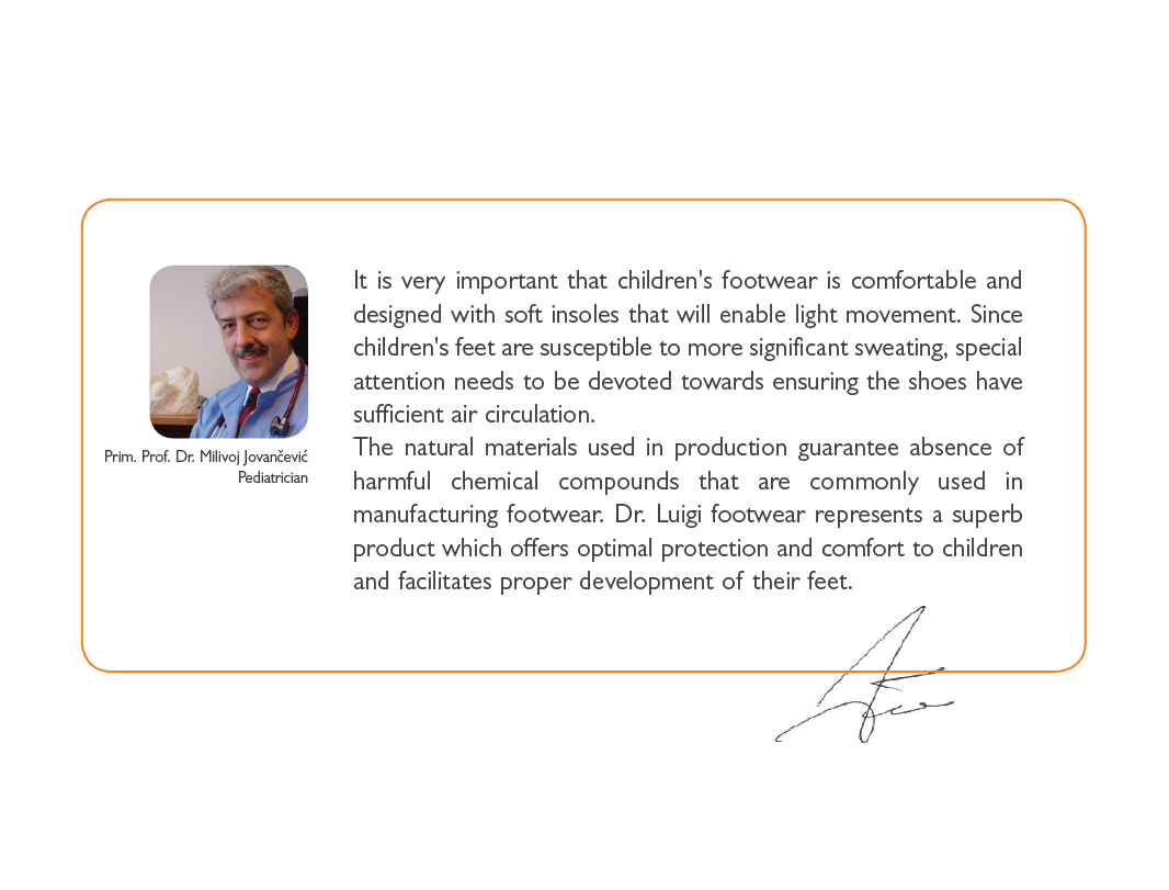 The natural materials used in production guarantee the absence of harmful chemical compounds that are commonly used in manufacturing footwear. DrLuigi medical footwear represents a superb product which offers optimal protection and comfort to children and facilitates proper development of their feet.