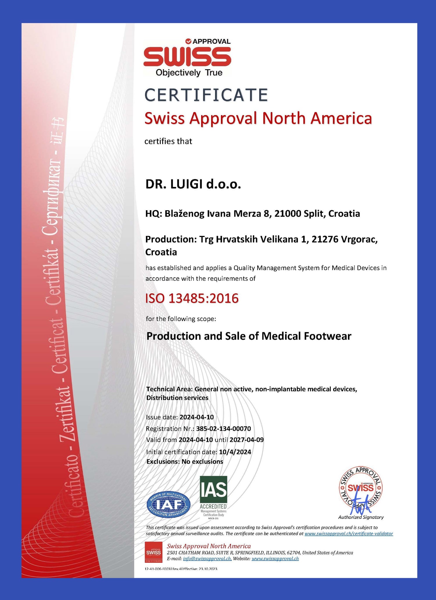 CERTIFICATE Swiss Approval North America